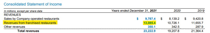 Revenues from franchised restaurants are two distinct sets of sales. Look at this breakout for sales from franchised restaurants:
